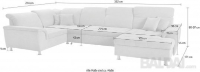 Modernus,didelis,patogus sėdėti kampas, dengtas geros kokybės audiniu, ,spyruoklinis blokas,pagrindas pagamintas iš FSC® sertifikuotos medienos Kampas turi miegamą funkciją ir patalynės dėžę .