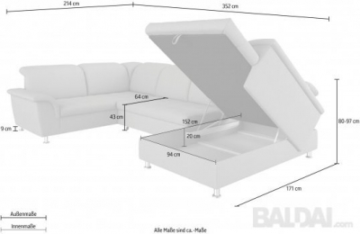 išmatavimai 214x352X171 cm. daugiau išmatavimų nuotraukoje .