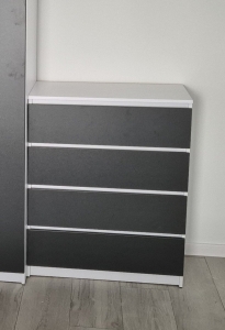 Komodos konstrukcijoje yra keturi ištraukiami stalčiai ant patvarių teleskopinių bėgelių, kurie užtikrina tylų ir sklandų atidarymą.